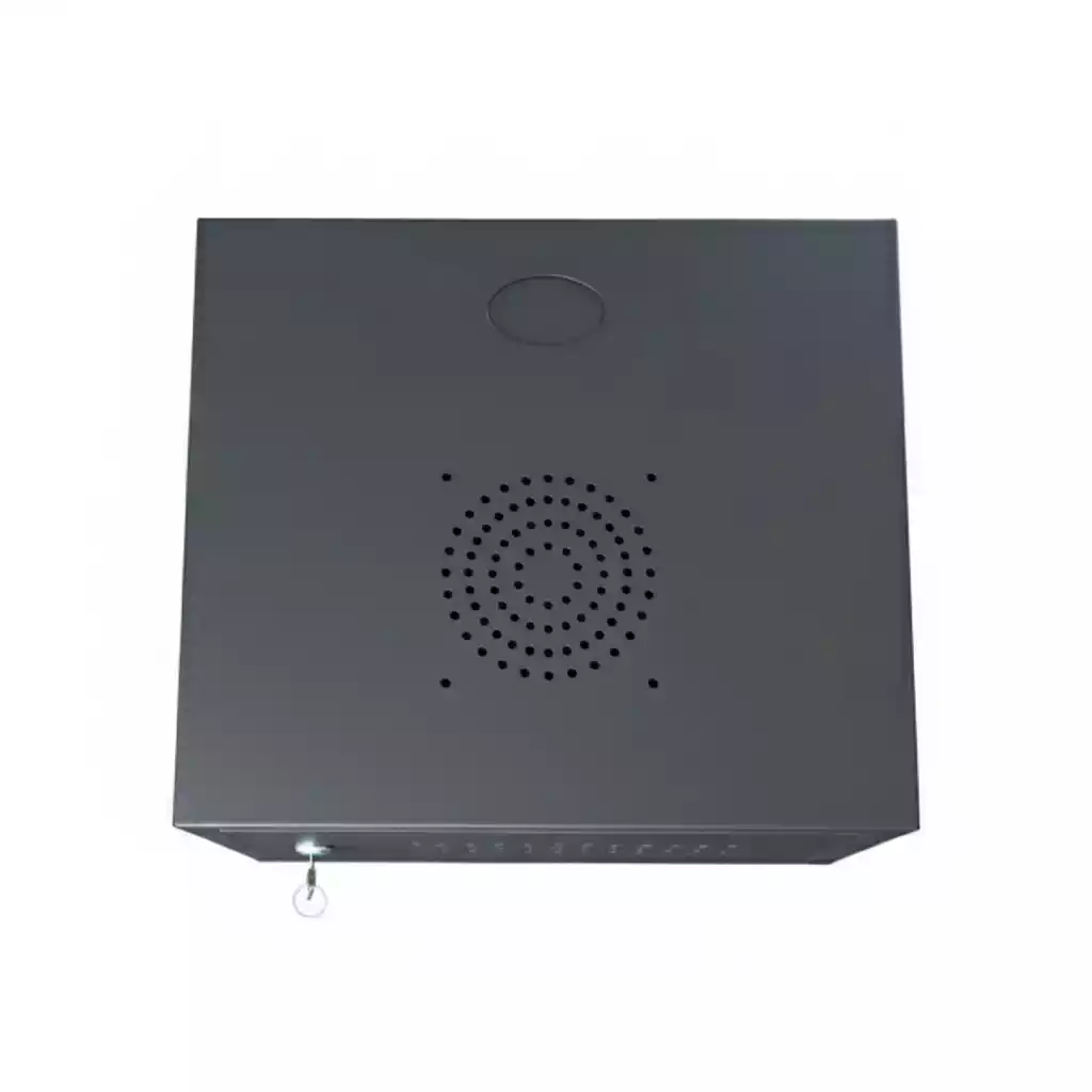 تجهیزات فعال شبکه مانند سوئیچها و روترها در حین کار حرارت تولید میکنند. تجمع حرارت میتواند به کاهش عملکرد، هنگ کردن و حتی خرابی دائمی دستگاهها منجر شود. رک دیواری SRW6U با طراحی هوشمندانه تهویه، این ریسک را به حداقل میرساند. شیارهای متعدد در بخشهای بالایی و پایینی بدنه، جریان طبیعی هوا (Convection) را ممکن میسازند. علاوه بر این، یک جایگاه استاندارد برای نصب فن ۱۲x۱۲ سانتیمتری در سقف رک تعبیه شده است. با نصب یک فن، میتوانید جریان هوای اجباری ایجاد کرده و هوای گرم را به سرعت از رک خارج کنید، که این امر برای سیستمهای نظارتی که به صورت ۲۴/۷ فعال هستند، حیاتی است.
