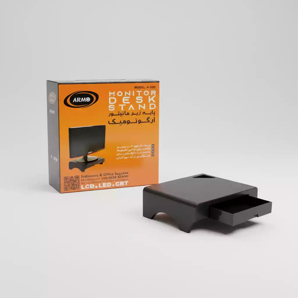 ARMO است که در زمینه تولید تجهیزات اداری و لوازم جانبی کامپیوتر شناخته میشود. این محصول علاوه بر بهبود وضعیت بدنی کاربر، به نظمدهی میز و دسترسی آسانتر به ابزارها کمک میکند. وجود کشوی کوچک در زیر پایه، فضایی برای قرار دادن لوازم ضروری مانند فلش، کابل، دفترچه یا خودکار فراهم کرده است.