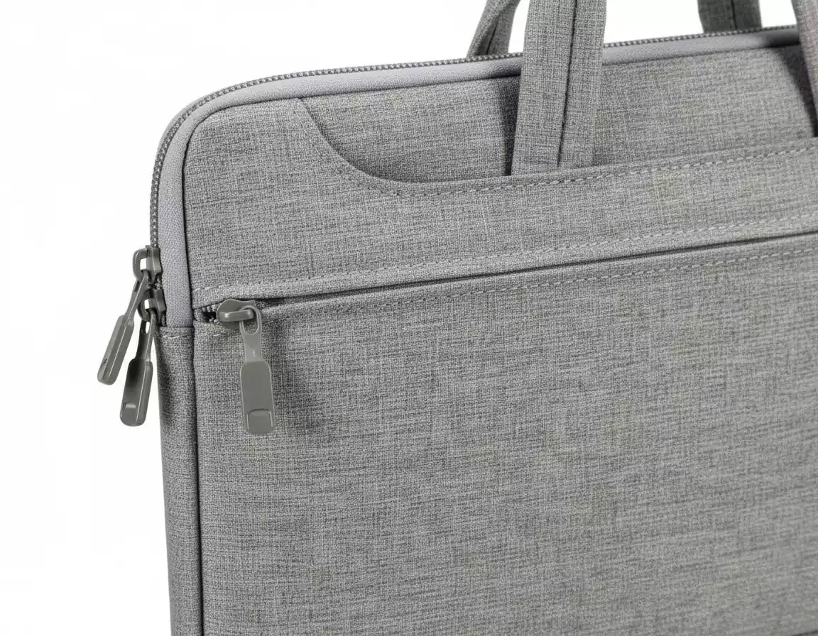 کیف نوت بوک در نگاه اول، جنس پارچهای با بافت زیبا و مقاوم کیف جلب توجه میکند. رنگ طوسی روشن با ترکیب دوختهای ظریف، جلوهای مدرن و حرفهای به آن بخشیده است. پارچه بیرونی از نوع