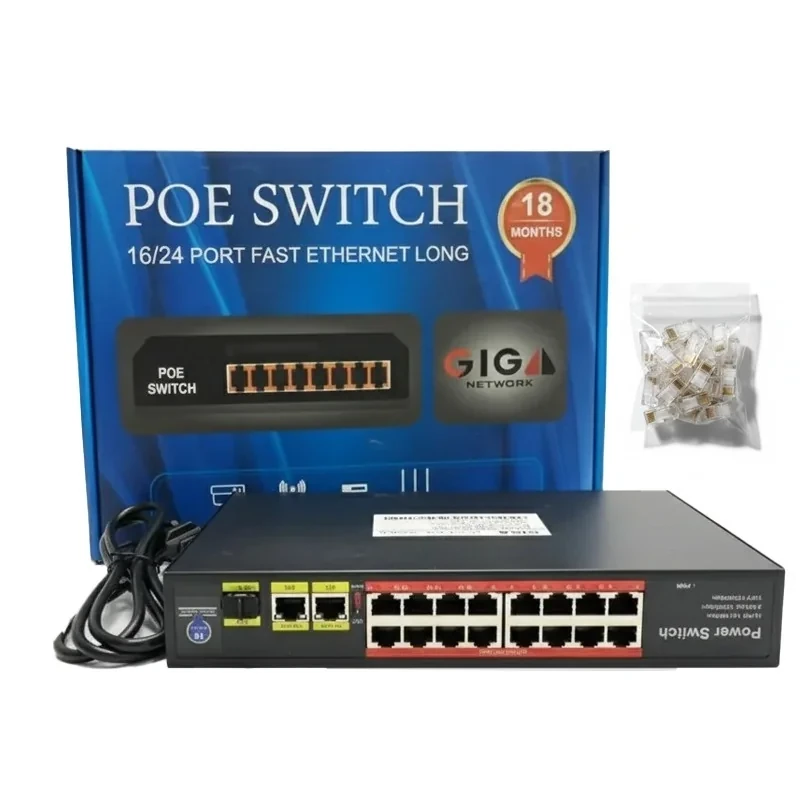 سوئیچ شبکه ۱۶ پورت POE گیگا با ۲ پورت آپلینک گیگابیتی و ۱ پورت SFP، گزینهای حرفهای برای ایجاد شبکههای پایدار، سریع و مقرونبهصرفه است. این سوئیچ همراه با ۱۰۰ عدد سوکت شبکه ارائه میشود و برای دوربینهای IP و تلفنهای VoIP ایدهآل است.